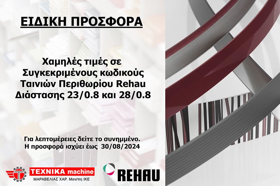 Θα θέλαμε να σας ενημερώσουμε σχετικά με μια ειδική προσφορά για ταινίες περιθωρίου της Γερμανικής εταιρείας REHAU, η οποία ισχύει για περιορισμένο χρόνο!
